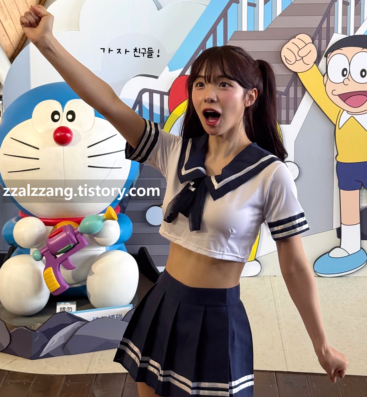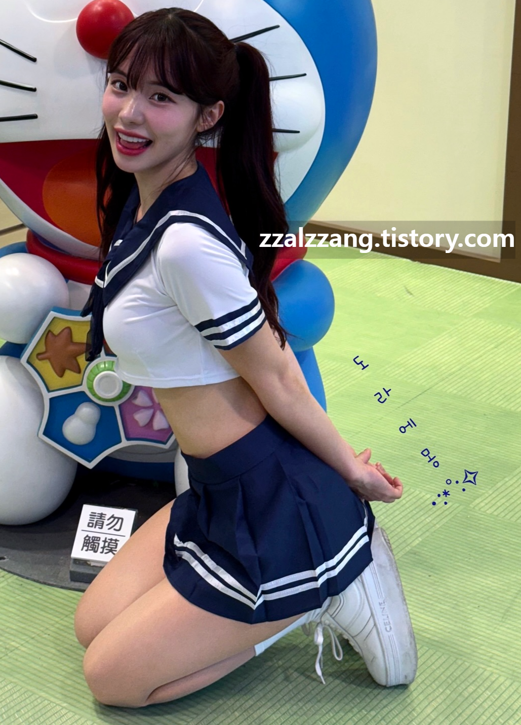 양갈래 머리 세라복 코스프레한 이다혜 치어리더 비주얼